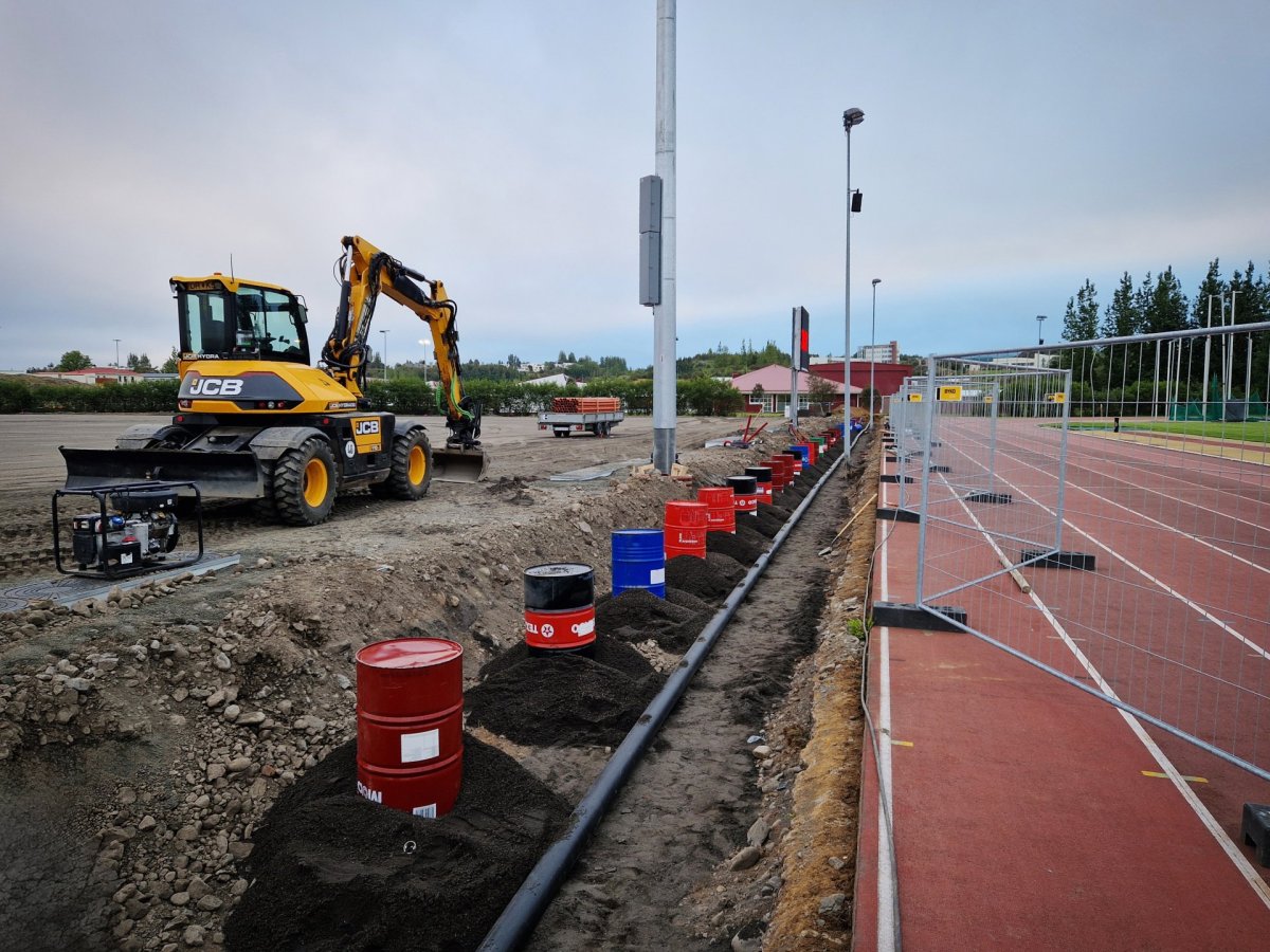 Þann 8. desember lauk allri lagnavinnu utandyra og eftir stendur að ljúka lagnavinnu og uppsetningu búnaðar í tæknirými vallarins.